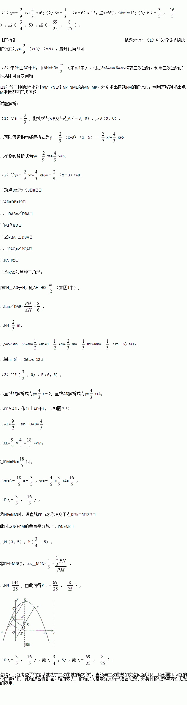 (2)如图1,过点P作BD的平行线,交AB于点Q,连接DQ,设AQ=m,△PDQ的面积为S,求S关于m的函数解析式,以及S的最大值;