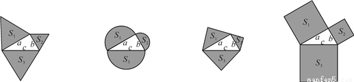如图,以直角三角形a,b,c为边,向外作等边三角形、半圆、等腰直角三角形和正方形,上述四种情况的面积关系满足S1+S2=S3图形个数有( )
