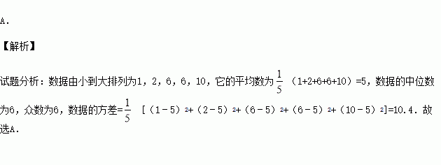关于2、6、1、10、6的这组数据,下列说法正确的是( )