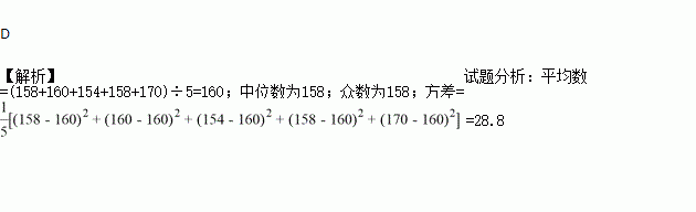 在2016年龙岩市初中体育中考中,随意抽取某校5位同学一分钟跳绳的次数分别为:158,160,154,158,170,则由这组数据得到的结论错误的是( )