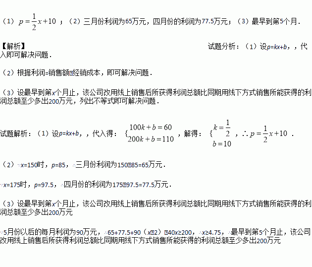 (3)把3月作为第一个月开始往后算,最早到第几个月止,该公司改用线上销售后所获得利润总额比同期用线线下方式销售所能获得的利润总额至少多出200万元?(利润=销售额-经销成本)