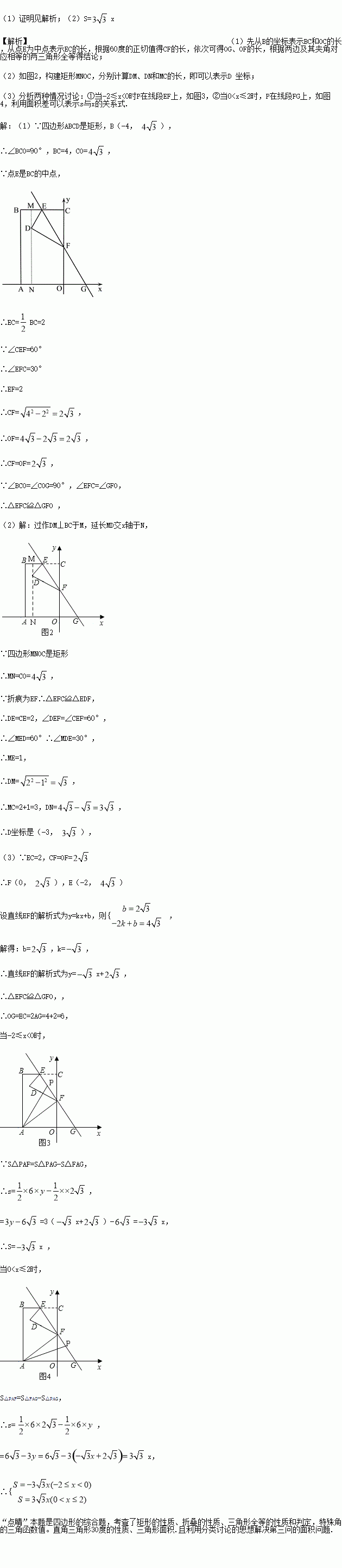 ),点E是BC的中点,现将矩形折叠,折痕为EF,点F为折痕与y轴的交点,EF交x轴于G且使∠CEF=60°.