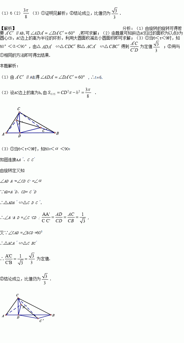 得到△A‘C’D, 旋转时间为t秒,△ACD绕D点旋转的角速度