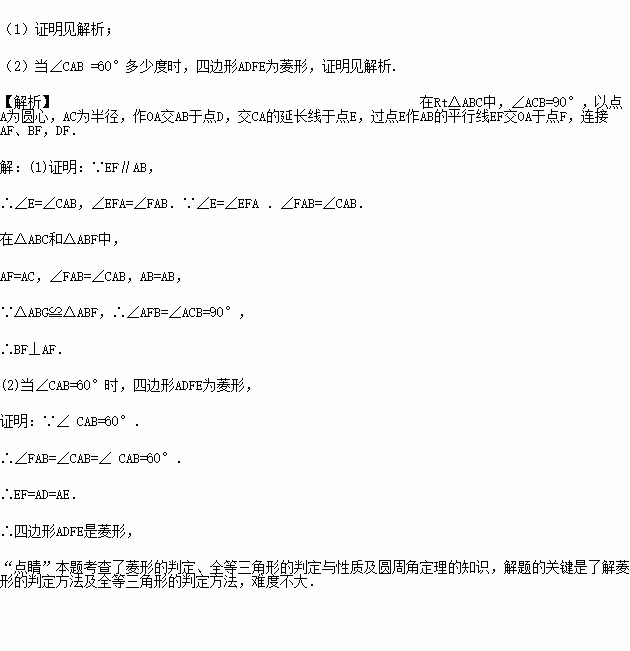 ⑵当∠CAB等于多少度时,四边形ADEF为菱形,并给于证明.