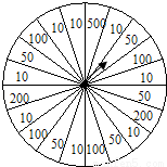 如图,某商场为了吸引顾客,设立了一个可以自由转动的转盘,并规定:每购买500元商品,就能获得一次转动转盘的机会,如果转盘停止后,指针上对准500、200、100、50、10的区域,顾客就可以获得500元、200元、100元、50元、10元的购物券一张(转盘等分成20份)。
