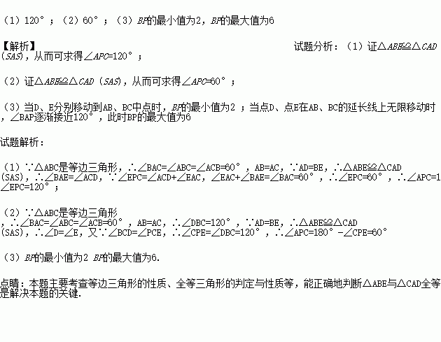 ,当D、E在运动的过程中,连接BP,直接写出线段BP的最小值和最大值.