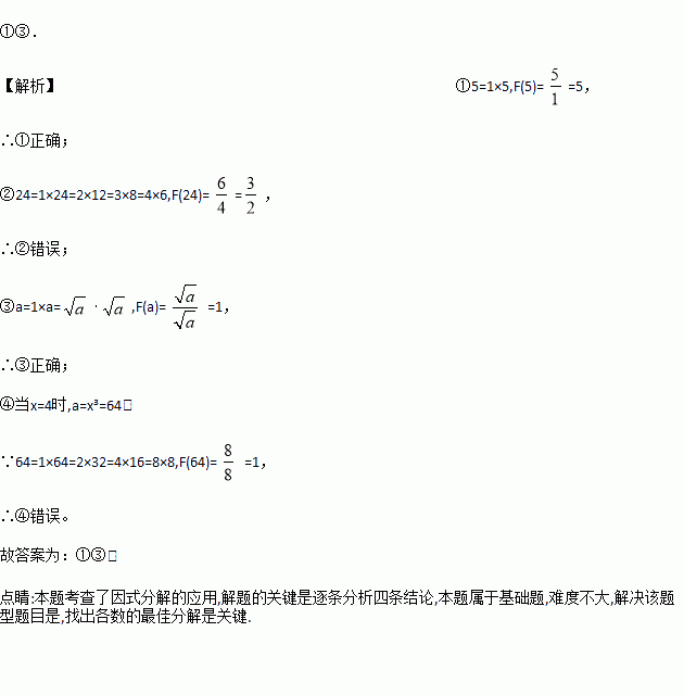 ;③若a是一个完全平方数,则F(a)=1;④若a是一个完全立方数,即a=x3(x是正整数),则F(a)=x.则正确的结论有_____(填序号)