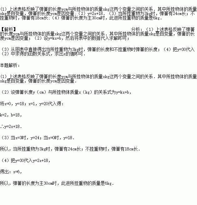 (2)写出弹簧长度y(cm)与所挂物体质量x(kg)的关系式.