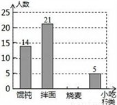 (2)若该校有2000名学生,请估计全校同学中,最喜爱“馄饨”的同学有多少人;
