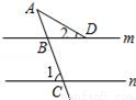 如图,直线m∥n,∠1=70°,∠2=30°,则∠A等于( )