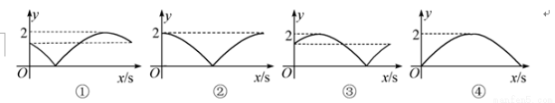 如图,A,B是半径为1的⊙O上两点,且OA⊥OB. 点P从A出发,在⊙O上以每秒一个单位长度的速度匀速运动,回到点A运动结束. 设运动时间为x,弦BP的长度为y,那么下面图象中可能表示y与x的函数关系的是