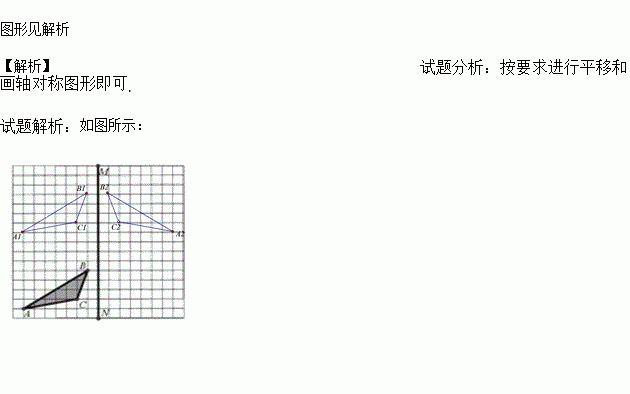在网格上把△ABC向上平移8小格得到△A1B1C1,再作△A1B1C1关于直线MN的轴对称图形得到△A2B2C2。画出△A1B1C1、和△A2B2C2.