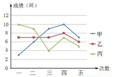 甲、乙、丙三人进行飞镖比赛,已知他们每人五次投得的成绩如图,那么三人中成绩最稳定的是_______.