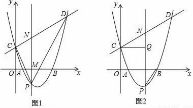 相交于C、D两点,点P是抛物线上的动点且位于x轴下方,直线PM∥y轴,分别与x轴和直线CD交于点M、N.