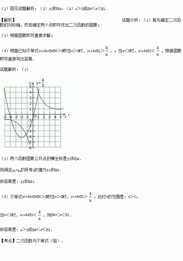 设y3=x2+4x﹣1,y4=