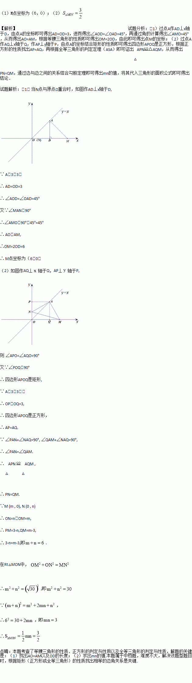 上一点,点M(m ,0)与点N(0 ,n)分别在x轴与y轴上,且∠MAN=90°.