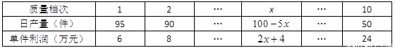 某工厂生产的某种产品按质量分为10个档次,据调研显示,每个档次的日产量及相应的单件利润如下表所示(其中x为正整数,且1≤x≤10):