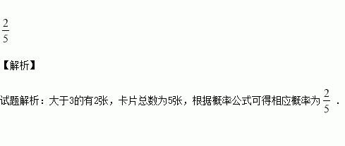 把分别写有数字1,2,3,4,5的5张同样的小卡片放进不透明的盒子里,搅拌均匀后随机取出一张小卡片,则取出的卡片上的数字大于3的概率是________________.