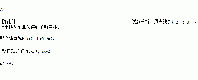 将直线y=2x向上平移2个单位所得的直线的解析式是( )