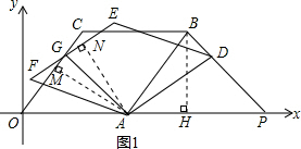 ·ÖÎö £¨1£©Èçͼ1£¬¹ýµãB×÷BH¡ÍxÖáÓÚµãH£¬¹¹½¨Ö±½Ç¡÷ABH£¬ËùÒÔÀûÓÃÁâÐεÄËÄÌõ±ßÏàµÈµÄÐÔÖʺͽâ¸ÃÖ±½ÇÈý½ÇÐεõ½AH¡¢BHµÄ³¤¶È£¬ÔòÒ×ÇóµãBµÄ×ø±ê£»