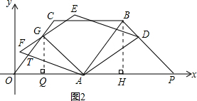 £¨4£©Èçͼ2£¬¹ýµãG×÷GQ¡ÍxÖáÓÚµãQ£¬¹¹½¨ÏàËÆÈý½ÇÐΣº¡÷GOA¡×¡÷BAP£¬¸ù¾Ý¸ÃÏàËÆÈý½ÇÐεĶÔÓ¦±ß³É±ÈÀýµÃµ½ÇóµÃGQµÄ³¤¶È£®½áºÏÒÑÖªÌõ¼þtan¡ÏAOC=$\frac{4}{3}$£¬À´Çó±ßOQµÄ³¤¶È£¬¼´¿ÉµÃµ½µãGµÄ×ø±ê£®