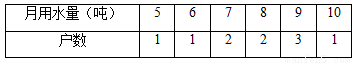 为了解居民用水情况,晓娜在某小区随机抽查了10户家庭的月用水量,结果如下表: