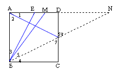 | 证明:(1)∵正方形ABCD中AD=AB,∠ADC=∠BAD=90° ∴∠1+∠2=90° ∵AF⊥BE ∴∠3+∠2=90° ∴∠1=∠3 在△ADF和△BAE中 ∴△ADF≌△BAE ∴DF=AE ∵AE=DE= ∴DF=CF= ∴点F是CD边的中点 (2)连结BF,并延长交AD的延长线于点N ∵正方形ABCD中AD∥BC ∴∠4=∠N 在△NDF和△BCF中 ∴△NDF≌△BCF ∴DN=CB ∵正方形ABCD中AD=BC=CD ∴DN=CD ∵BM=DM+CD ∴BM=DM+DN=MN ∴∠5=∠N=∠4 ,即∠MBC=2∠4 在△ADF和△BCF中 ∴△ADF≌△BCF ∴∠1=∠4 ∵∠1=∠3 ∴∠1=∠4 ∴∠MBC=2∠3=2∠ABE |