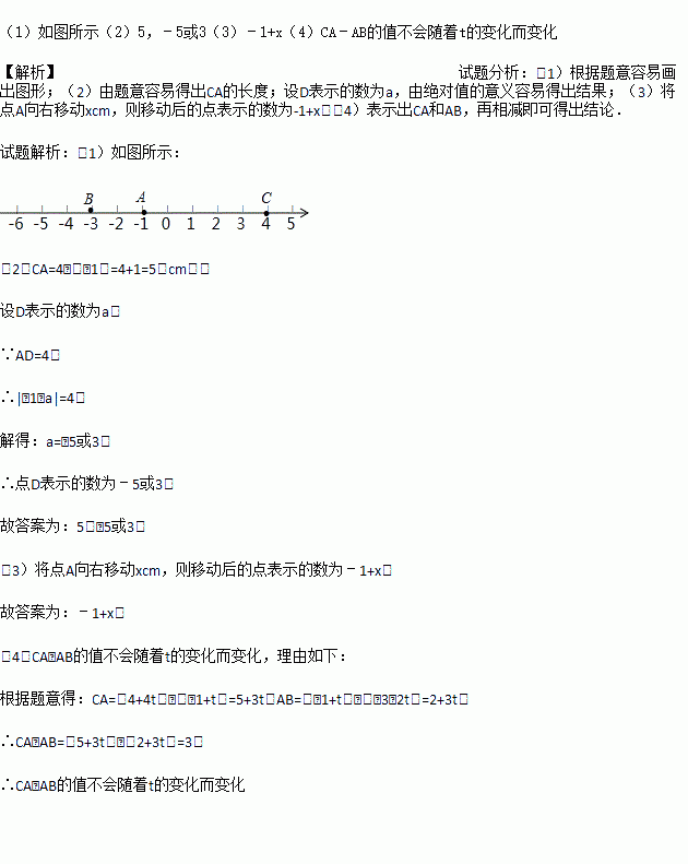 试探索:CA﹣AB的值是否会随着t的变化而改变?请说明理由.