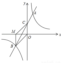 (k≠0)的图象交于第一、三象限内的A、B两点,与y轴交于点C,过点B作BM⊥x轴,垂足为M,BM=OM,OB=2