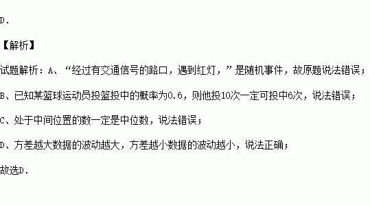 D.方差越大数据的波动越大,方差越小数据的波动越小