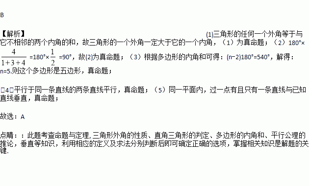 (2)若一个三角形的三个内角之比为1:3:4,它肯定是直角三角形