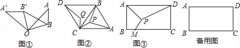 如图①,已知:△OAB中,OB=3,将△OAB绕点O逆时针旋转90°得△OA′B,连接BB′.