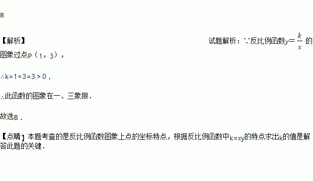 已知反比例函数y=kx-1的图象过点P(1,3),则该反比例函数图象位于( )