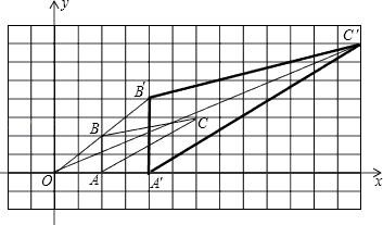 如图,图中的小方格都是边长为1的小正方形,△ABC与△A′B′C′是以点O为位似中心的位似图形,它们的顶点都是在小正方形的顶点上.