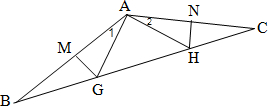 分析:根据线段的垂直平分线的性质得到GA=GB,HA=HC,再由等腰三角形的性质得∠B=∠1,∠C=∠2,而∠B+∠C+∠BAC=180°,则∠1+∠2=180°-∠BAC=180°-144°=36°,利用∠GAH=∠BAC-(∠1+∠2)计算即可.