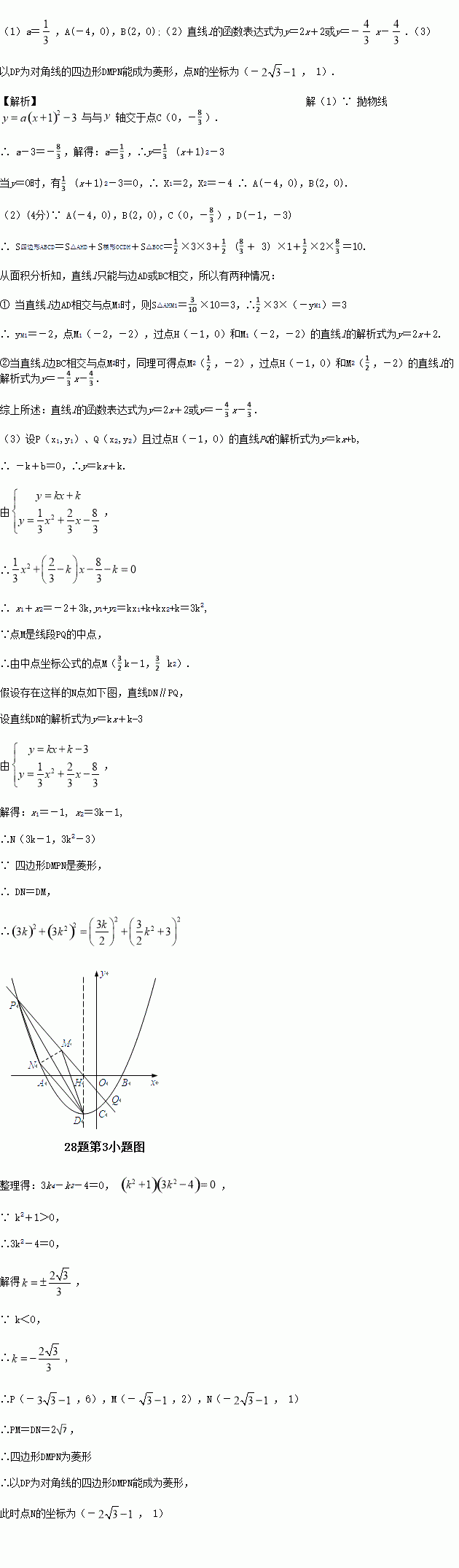 (3)µ±µãPλÓÚµÚ¶þÏóÏÞʱ£¬ÉèPQµÄÖеãΪM£¬µãNÔÚÅ×ÎïÏßÉÏ£¬ÔòÒÔDPΪ¶Ô½ÇÏßµÄËıßÐÎDMPNÄÜ·ñ³ÉΪÁâÐΣ¿ÈôÄÜ£¬Çó³öµãNµÄ×ø±ê£»Èô²»ÄÜ£¬Çë˵Ã÷ÀíÓÉ£®