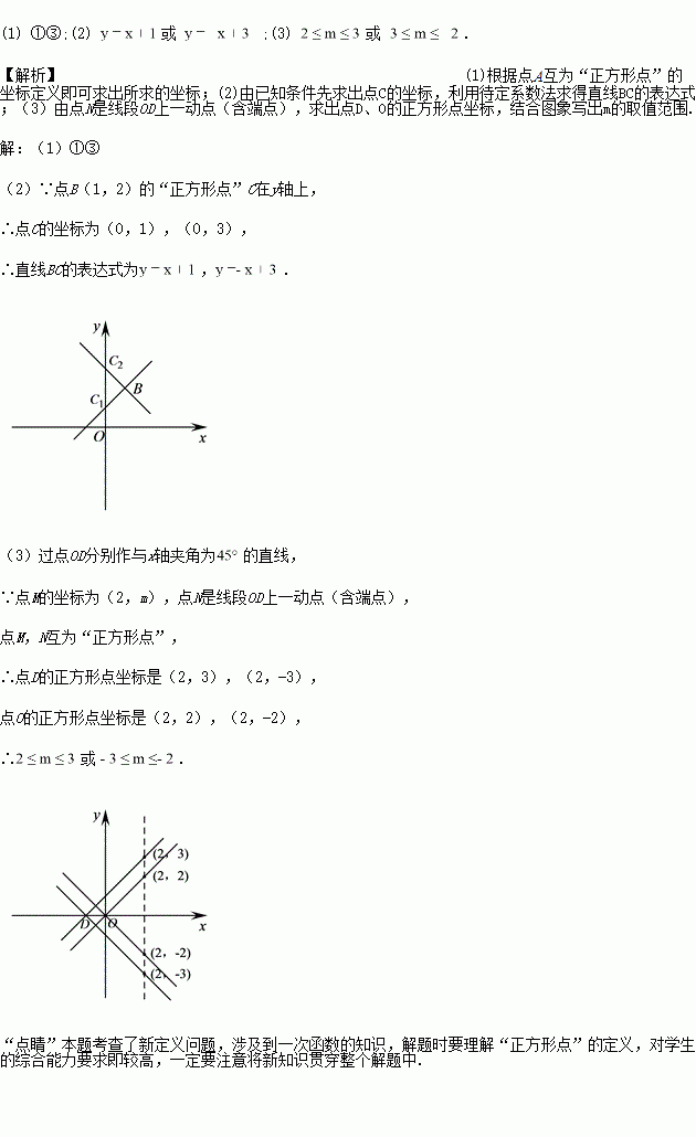£¨3£©µãDµÄ×ø±êΪ£¨-1£¬0£©£¬µãMµÄ×ø±êΪ£¨2£¬m£©£¬µãNÊÇÏß¶ÎODÉÏÒ»¶¯µã£¨º¬¶Ëµã£©£¬ÈôµãM£¬N»¥Îª¡°Õý·½Ðε㡱£¬ÇómµÄȡֵ·¶Î§.