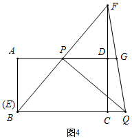如图4,当点E与点B重合时,Rt△ABP中,BP=$\sqrt{{3}^{2}+{4}^{2}}$=5,