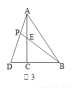 如图3,在△ABC中,∠ACB=90°,点D在BC的延长线上,AD与AC边上的中线BE的延长线交于点P,DC:BC:AC=1:2:3 .