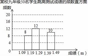 为了了解某校九年级学生的跳高水平,随机抽取该年级50名学生进行跳高测试,并把测试成绩绘制成如图所示的频数表和未完成的频数直方图(每组含前一个边界值,不含后一个边界值).