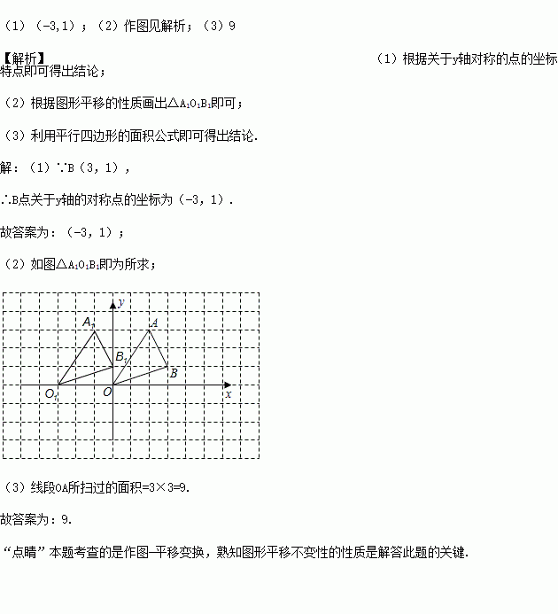(2)将△AOB向左平移3个单位长度得到△A1O1B1,请画出△A1O1B1;