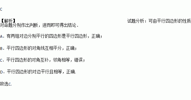 C. 平行四边形的对角互补,邻角相等