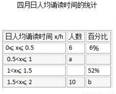 (2)四月日均诵读时间的统计表中的a值分别为 ;