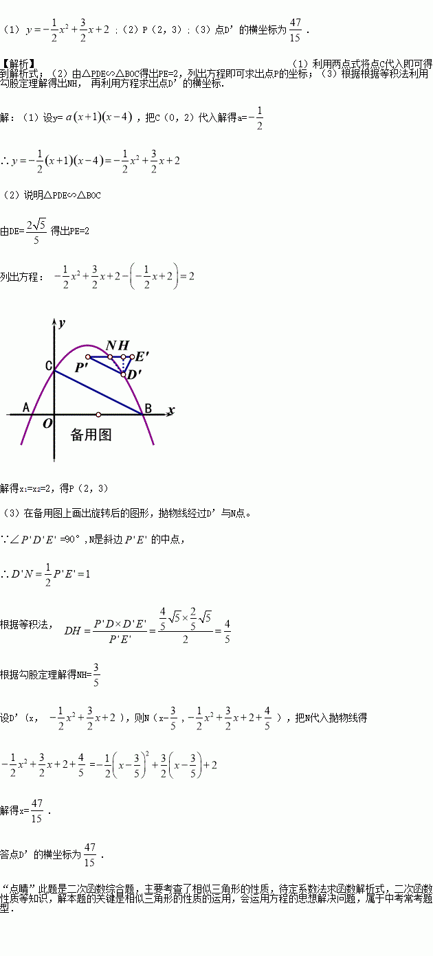 (3)M是平面内一点,将符合(2)条件下的△PDE绕点M沿逆时针方向旋转90°后,点P、D、E的对应点分别是