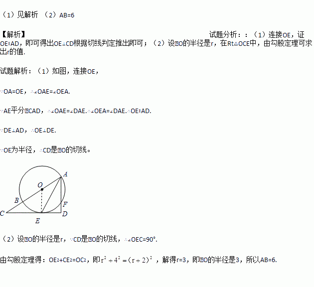 (1)求证:CD是⊙O的切线