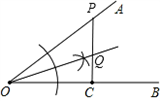 画图: 已知:点C是∠AOB的边OB上的一点,过点C作OA的垂线PC,与OA交与点P,在PC上求作一点Q,使该点到∠AOB的两边的距离相等。![]()