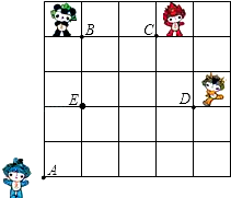 26、如图,奥运福娃在5×5的方格(每小格边长为1m)上沿着网格线运动.贝贝从A处出发去寻找B、C、D处的其它福娃,规定:向上向右走为正,向下向左走为负.如果从A到B记为:A?B(+1,+4),从B到A记为:B?A(-1,-4),其中第一个数表示左右方向,第二个数表示上下方向,那么图中
