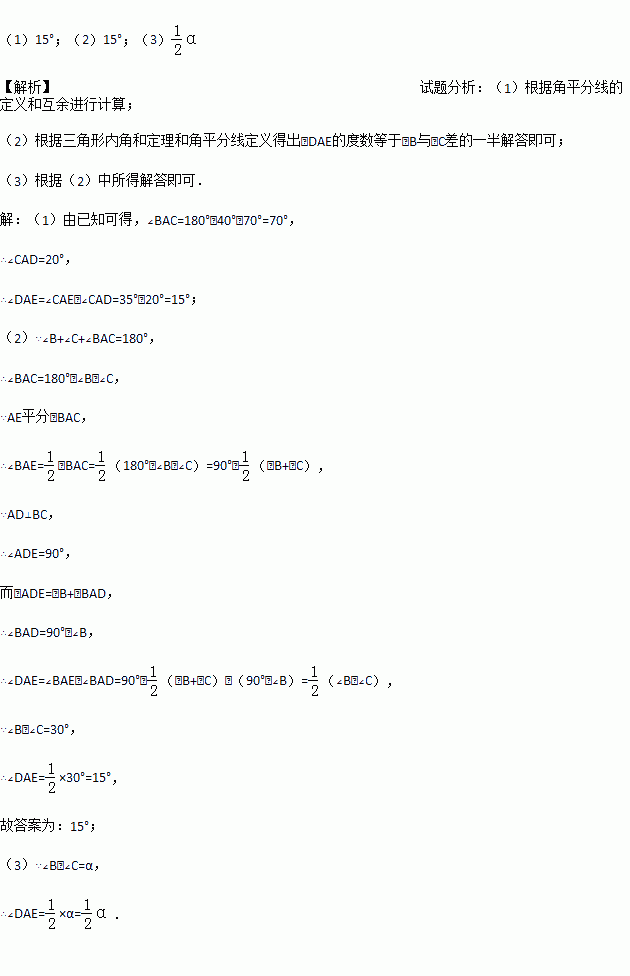 (1)若∠C=70°,∠B=40°,求∠DAE的度数