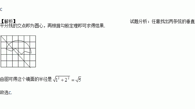 小英家的圆形镜子被打碎了,她拿了如图(网格中的每个小正方形边长为1)的一块碎片到玻璃店,配制成形状、大小与原来一致的镜面,则这个镜面的半径是( )