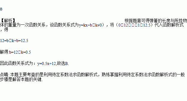 弹簧挂上物体后会伸长,测得一弹簧的长度y(cm)与所挂重物的质量x(kg)有下面的关系,那么弹簧总长y(cm)与所挂重物x(kg)之间的关系是( )